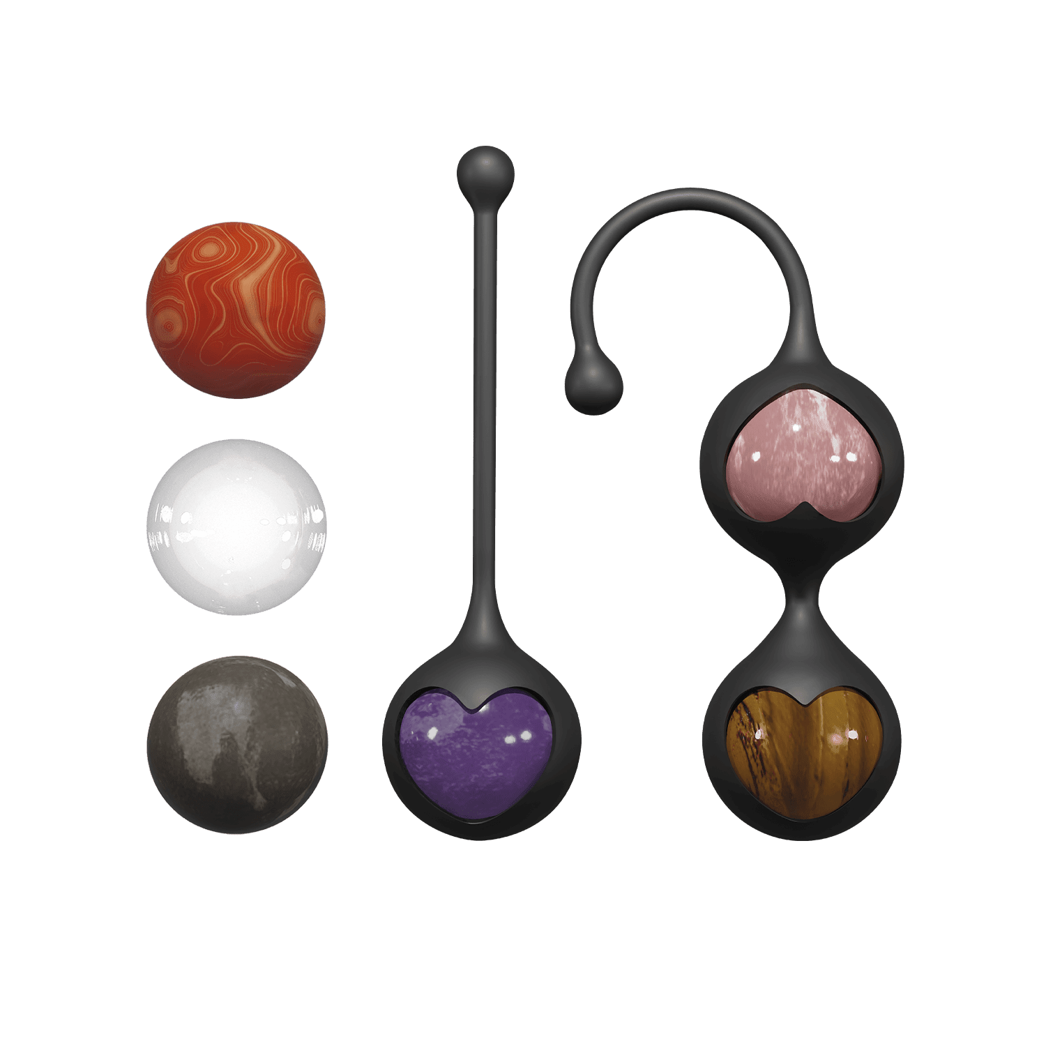 Adrien Lastic bietet dieses Set von Harmony Stones Geisha-Kugeln an, die aus verschiedenen Halbedelsteinen bestehen und Ihnen körperliches Wohlbefinden und gute psychische