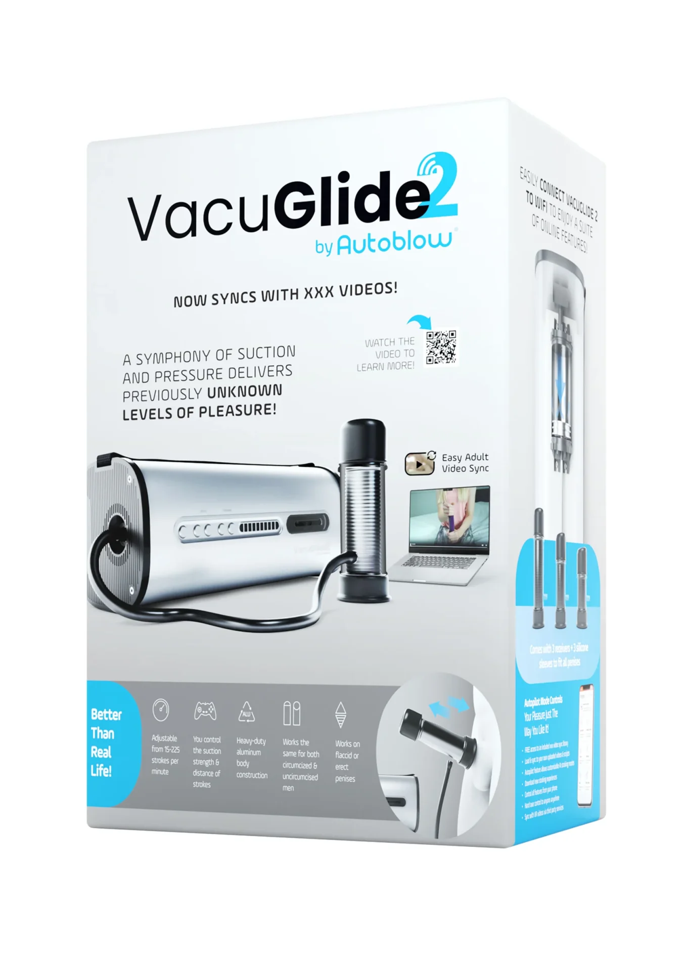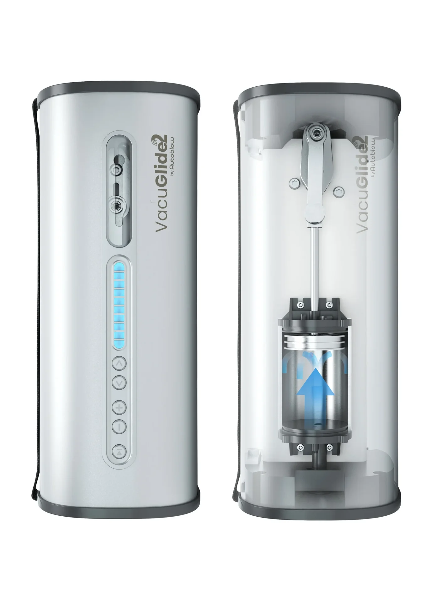 Vollautomatischer Hand- und Blowjob jetzt auch per App. Flüsterleiser Masturbator VacuGlide 2 von Autoblow, der Vakuum unterstützte Greif- und Gleitbewegungen mit starker Saugkraft kombiniert. Für die perfekte Penismassage mit aufregend realistischen Blowjob-Feelings. Vollautomatisch – einfach zurücklehnen und geniessen. Die Funktionen sind einfach per Knopfdruck direkt am formschönen, robusten Aluminium-Gerät steuerbar. Mit 25-200 Saugimpulsen pro Minute und individueller Einstellbarkeit der Stroker-Funktion ist für jedes Verlangen die richtige Intensität und Geschwindigkeit dabei.