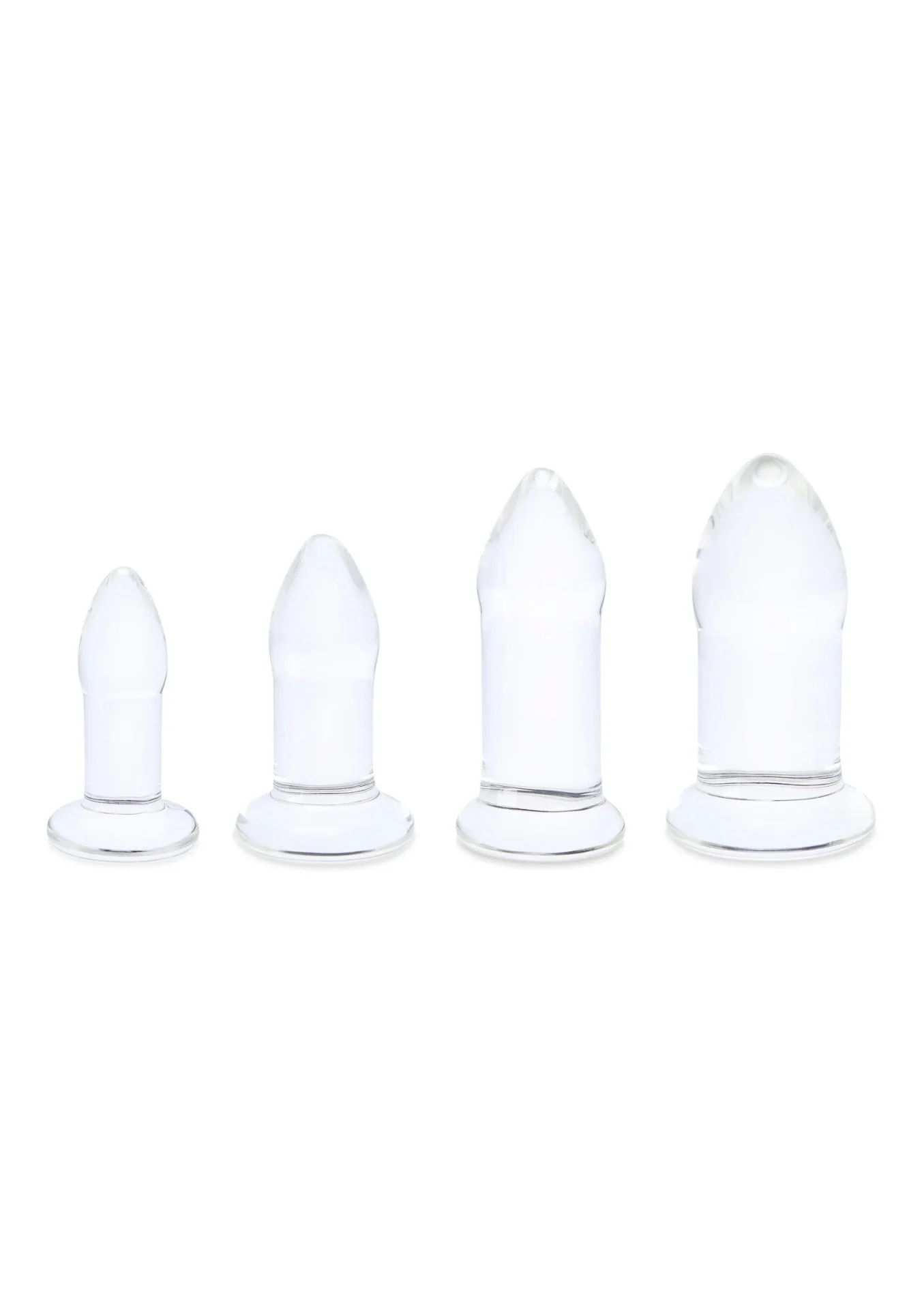 Steigere dein Vergnügen mit dem neuen b-Vibe 4-teiligen Glas-Analdilatator-Set. Das Set besteht aus vier analen Plugs in verschiedenen Grössen, die speziell entwickelt wurden, um den Analsphinkter und den Rektum zu öffnen und zu entspannen – ein Prozess, der oft als Analtaining bezeichnet wird. Hergestellt aus speziellem Borosilikatglas, das 100% bruchsicher ist, bietet jeder konisch geformte Plug eine einfache Einfügung, während die breite Basis maximalen Komfort für längeres Tragen gewährleistet. Kompatibel mit allen Arten von Gleitmitteln und perfekt für die solo anale Masturbation, kannst du das Set verwenden, um deinen Körper darauf vorzubereiten, grössere Toys zu akzeptieren. Diese progressiv grösseren Dilatatoren für den Hintereingang können zur Vorbereitung auf jegliches analen Spiel, zur Erleichterung von angenehmem Analsex oder einfach für zusätzliche Empfindungen verwendet werden. Steigere das Vergnügen beim Analsex mit einem Partner und experimentiere mit zusätzlichen Empfindungen – lege diese temperaturfreundlichen Glasplugs in den Kühlschrank für ein kühles Gefühl oder halte sie unter warmes Wasser, um die Dinge aufzuheizen. Es macht immer Spass, egal ob du neu im analen Spiel bist oder ein erfahrener Kenner. Das Set enthält ein 4-teiliges Glasplug-Set, einen Leitfaden für analen Spiel und eine Bedienungsanleitung.