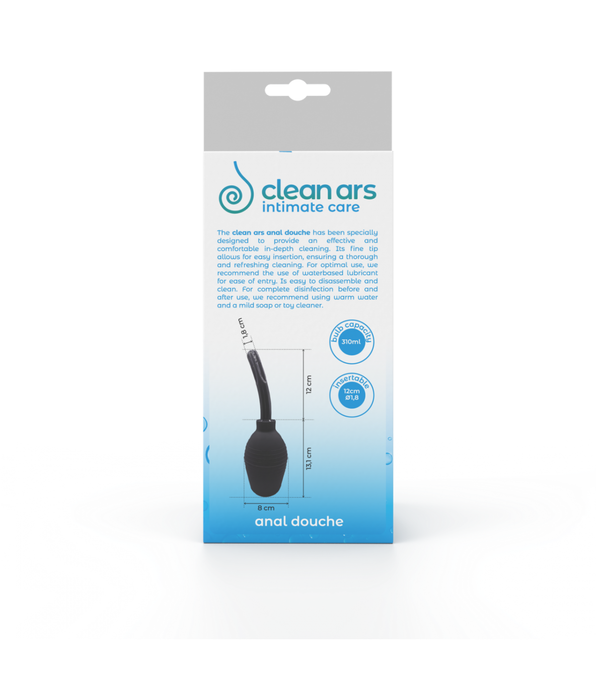 Der Clean Ars Analreiniger ist die ideale Lösung für alle, die Wert auf gründliche und effektive Hygiene legen – ob zu Hause oder unterwegs. Dank seines ergonomischen und praktischen Designs ermöglicht Clean Ars eine schnelle Reinigung vor oder nach der Stimulation und erlaubt Ihnen so, Ihr Vergnügen unbeschwert zu genießen.
