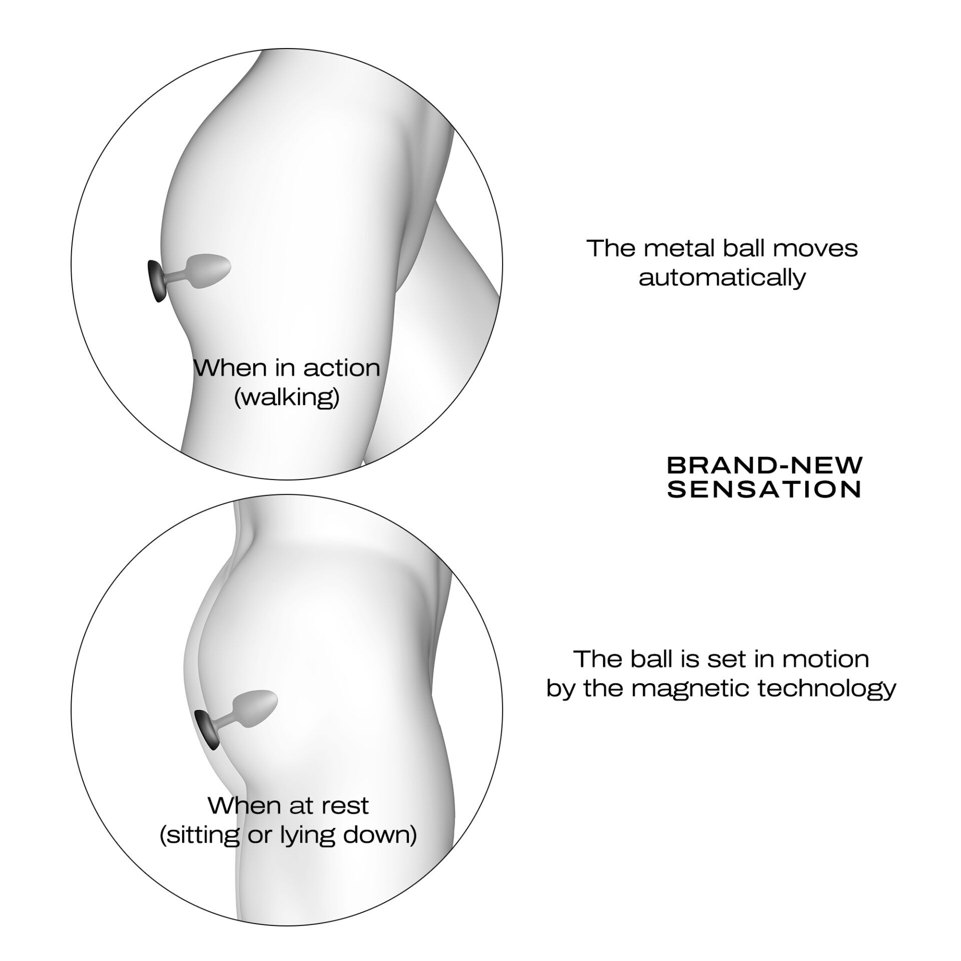 Warum „unendlich“? Wenn Sie sich bewegen, erwacht die Metallkugel automatisch zum Leben. Wenn Sie sich in Ruhe befinden (sitzen oder liegen), wird die Kugel durch die Magnettechnologie in Bewegung versetzt.