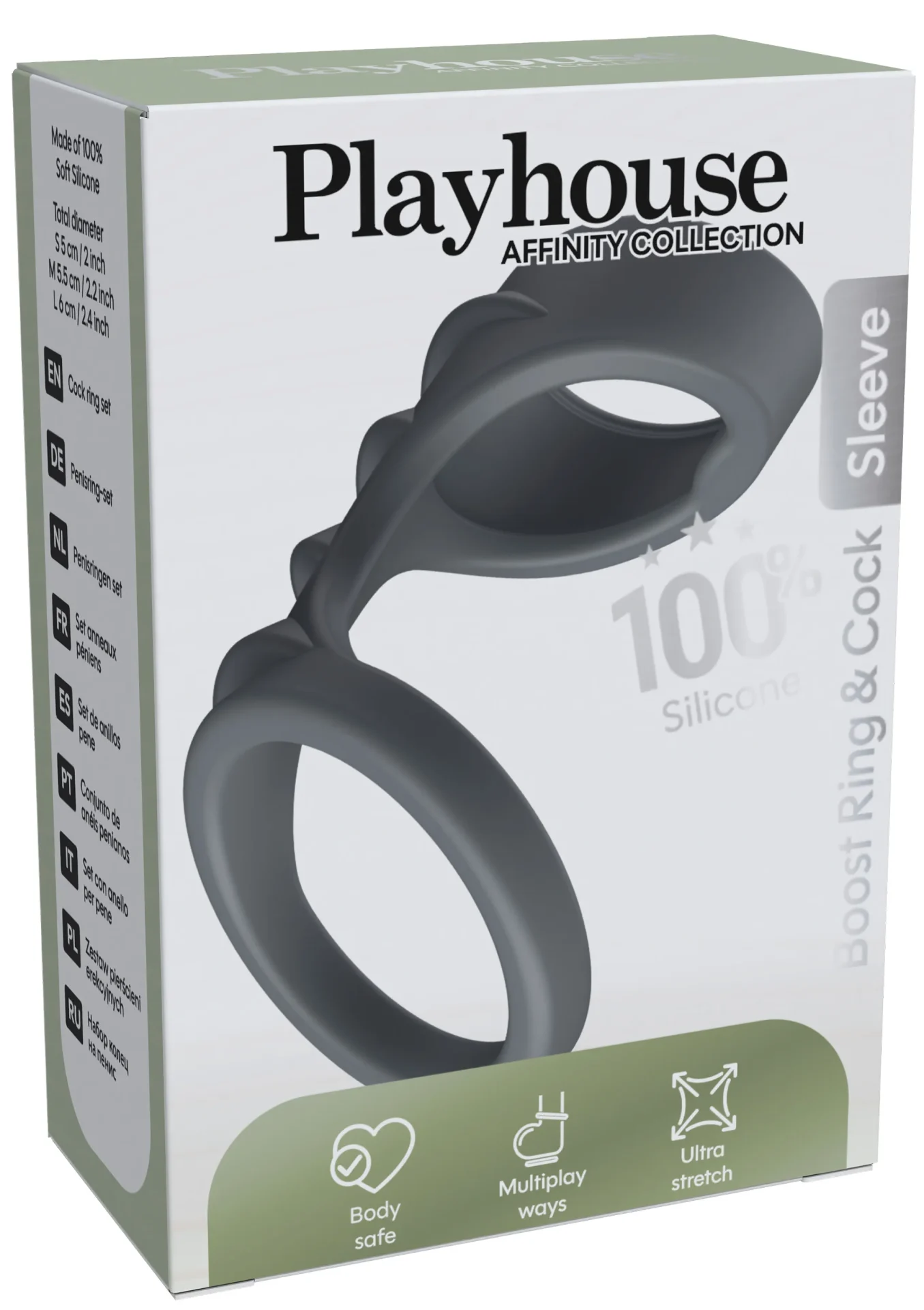 Der Boost Ring und Penis Sleeve von Play House vereint zwei Funktionen in einem Produkt. Der Penisring unterstützt die Erektion, während der Sleeve zusätzliche Dicke und Textur für ein intensiveres Empfinden bietet. Hergestellt aus weichem, körperfreundlichem Silikon, passt sich das Material leicht an und sorgt für ein angenehmes Tragegefühl auf der Haut. Die strukturierte Oberfläche fördert die Stimulation für beide Partner während der Anwendung. Dieses Produkt richtet sich an Nutzer, die gleichzeitig Grösse, Empfindung und Leistung steigern möchten. Es ist leicht, einfach zu reinigen und wasserdicht, was es sowohl für Anfänger als auch für erfahrene Nutzer geeignet macht, die eine unkomplizierte Möglichkeit suchen, Abwechslung und Intensität in intime Momente zu bringen.