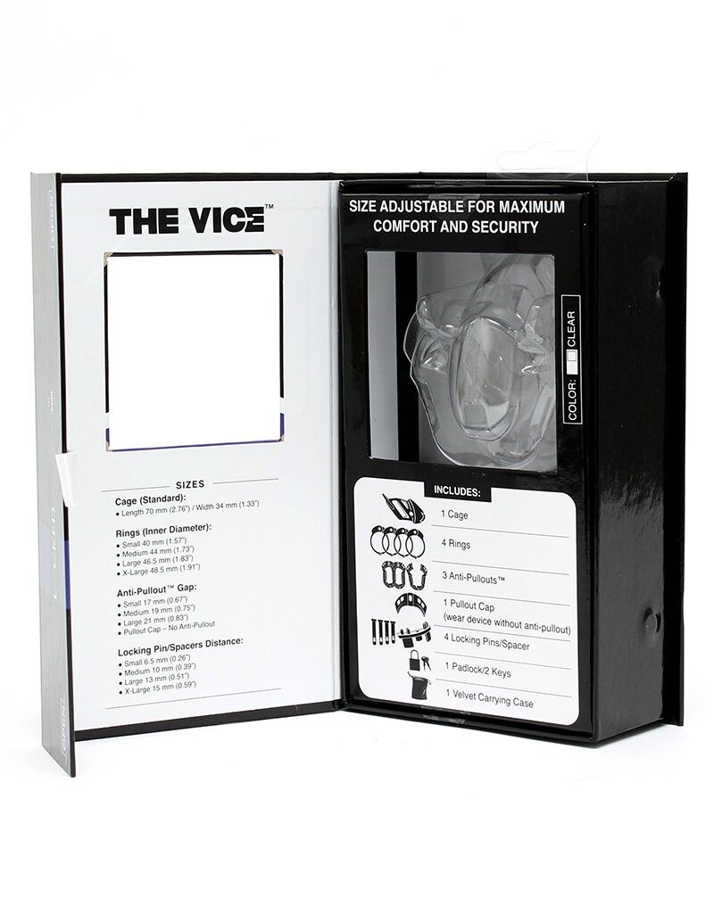 The Vice ist eine patentierte Keuschheitsvorrichtung für Männer. Die Keuschheitskäfige von The Vice bieten einen Grad an Sicherheit, den man bei anderen Keuschheitsvorrichtungen nicht kennt. Das strukturierte Design auf den inneren Laschen der Anti-Pullouts sind der Schlüssel zu seinem Anspruch, unentrinnbar zu sein. Wo andere Vorrichtungen unangenehm sein können, bleiben die Käfige beim Tragen oft unbemerkt, selbst wenn man den Anti-Pullout trägt. Anfängern raten wir, den Käfig ohne das Anti-Pullout-System zu tragen.