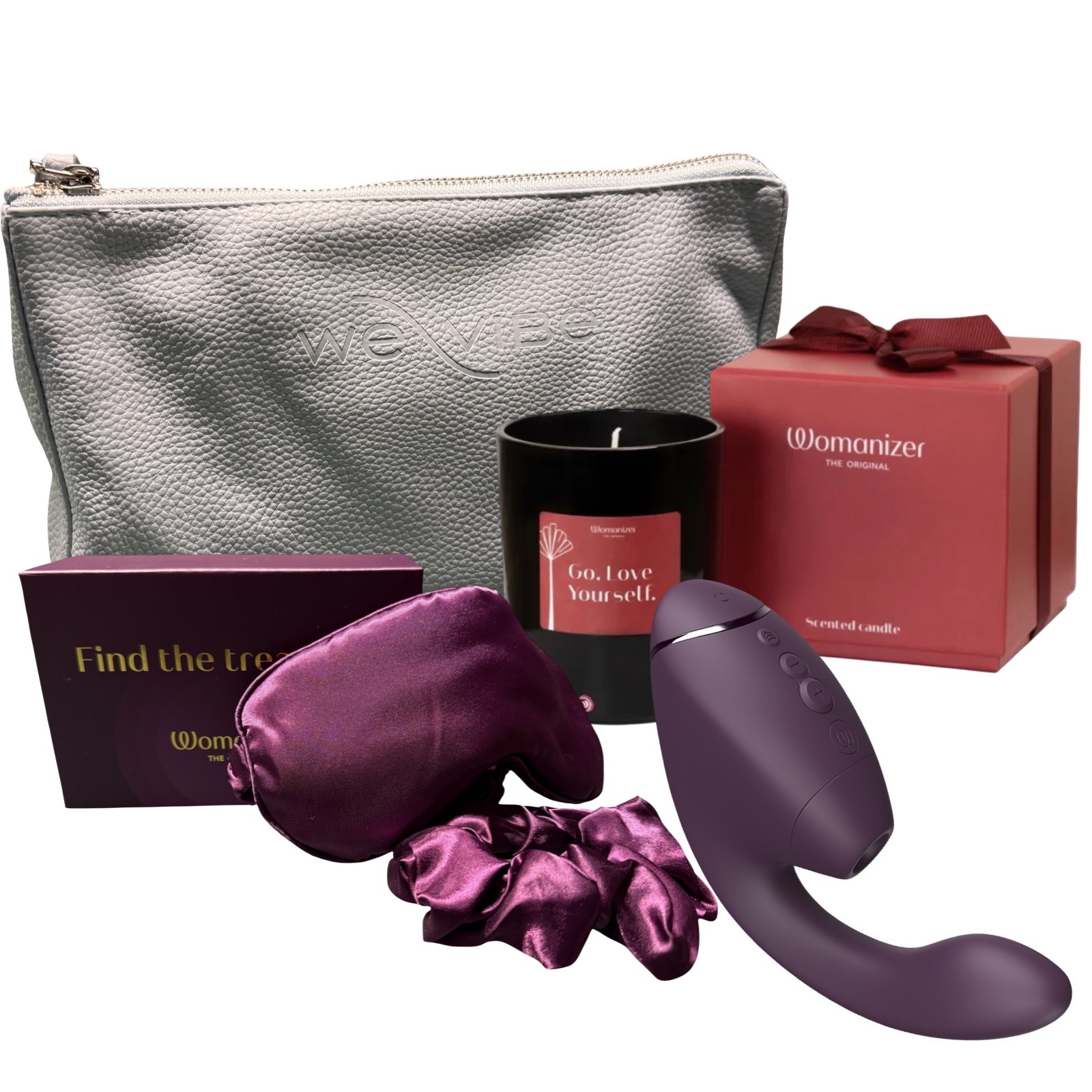 Im Mittelpunkt steht ein hochwertiges Womanizer Next Duo-Produkt, bekannt für seine innovative Technologie, stilvolles Design und außergewöhnlichen Komfort. Ergänzt wird das Set durch sorgfältig ausgewählte Extras, die das Erlebnis abrunden und es zu einem unvergesslichen Geschenk machen.